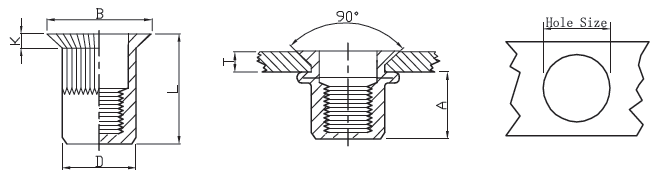 Hem / Produkt / Blinda nötter / Countersunk Head Round Body Rivet Nuts / Countersunk Head räfflade kroppsnitnötter / Stålräknare huvud räfflade kroppsnit nötter öppen typ